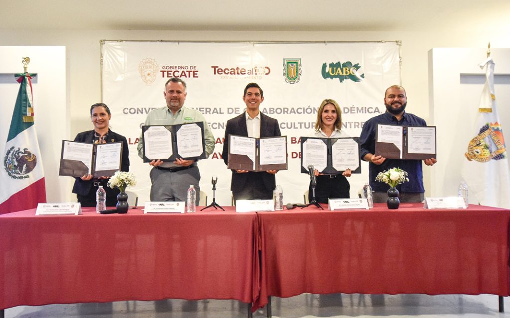 TECATE/TIJUANA.- La Universidad Autónoma de Baja California (UABC) consolidó su compromiso con el desarrollo regional mediante la firma de convenios de colaboración con los ayuntamientos de Tecate y Tijuana, con el propósito de impulsar acciones conjuntas en materia académica, científica, tecnológica, cultural y de formación profesional.