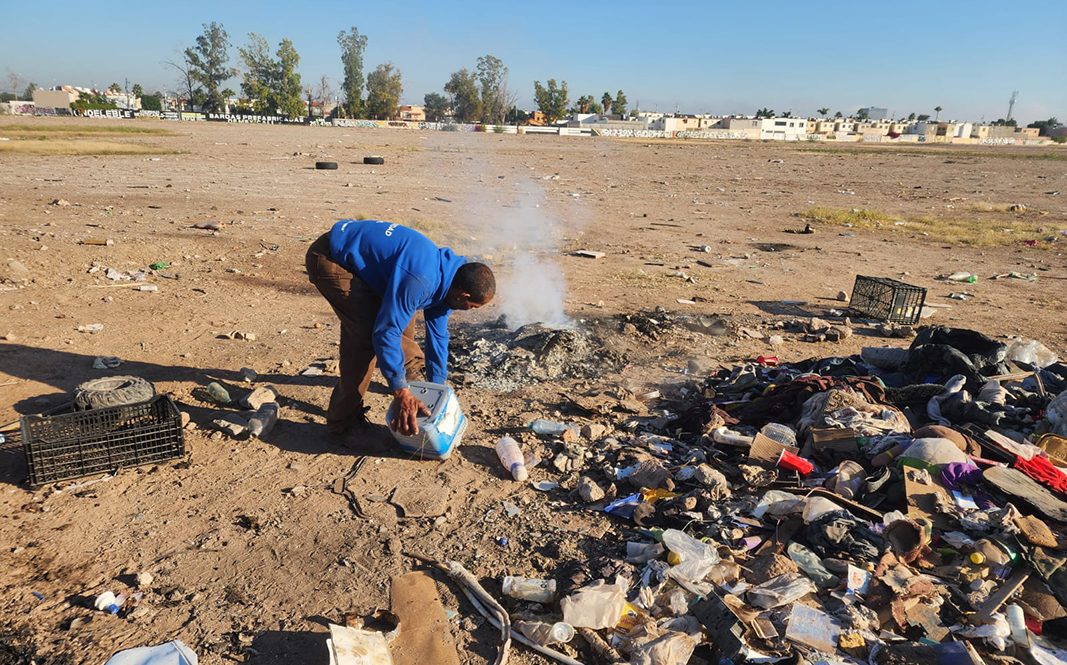 MEXICALI.- Gracias a que se continúan intensificando los patrullajes por las distintas zonas de Mexicali, una vez más la Unidad Ecológica de la Dirección de Seguridad Pública Municipal (DSPM) llevó a cabo la detención de una persona a la que sorprendió quemando basura en un predio en desuso de la colonia Independencia.