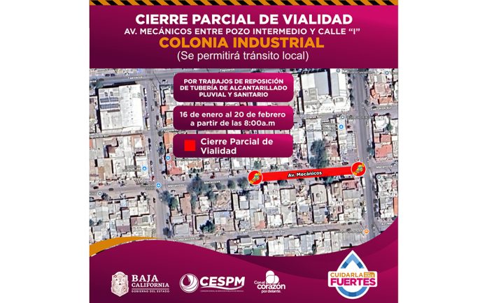 MEXICALI.– La Comisión Estatal de Servicios Públicos de Mexicali (CESPM) iniciará los trabajos de reposición de tubería de alcantarillado pluvial y sanitario en la colonia Industrial, como parte de las acciones para fortalecer la infraestructura hidráulica y prevenir afectaciones durante la temporada de lluvias.