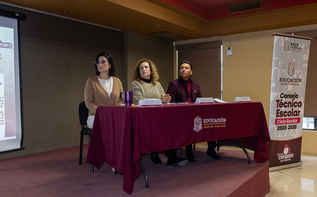 MEXICALI, B.C. En el marco de la Cuarta Sesión Ordinaria del Consejo Técnico Escolar (CTE) del ciclo 2025–2026, las comunidades educativas de todos los planteles de Educación Básica en Baja California reforzaron su compromiso académico, a la par de impulsar acciones pedagógicas con perspectiva de género, orientadas a la igualdad sustantiva y la erradicación de la violencia contra las mujeres.