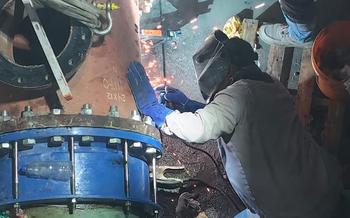 Como parte de las labores técnicas, se instaló la pieza tipo ¨T¨, se realizó el ajuste de los adaptadores bridados y se llevaron a cabo los trabajos de soldadura del soporte estructural de la ¨T¨, garantizando la correcta alineación y resistencia del conjunto. Posteriormente, se colocó la tapa ciega con inserción, así como la VAEA, elementos indispensables para la operación segura del emisor.