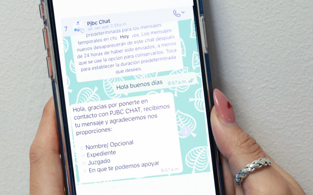 MEXICALI.- El Poder Judicial de Baja California (PJBC) consolida el servicio Chat PJBC vía WhatsApp a nivel estatal, atención que se ofrece para personas litigantes y público en general.
