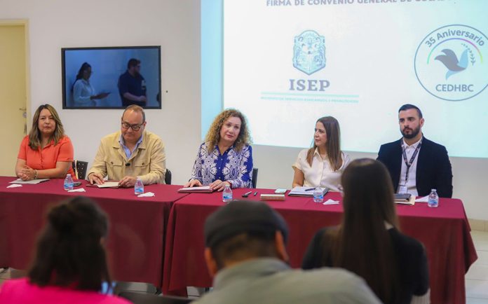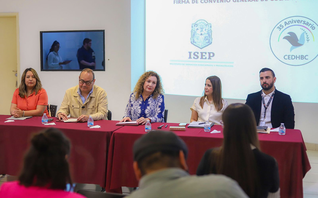 TIJUANA.-Con el propósito de fortalecer la promoción, difusión y protección de los derechos humanos en el ámbito educativo, la Secretaría de Educación de Baja California, a través del Instituto de Servicios Educativos de Baja California (ISEBC), firmó un convenio de colaboración con la Comisión Estatal de los Derechos Humanos de Baja California (CEDHBC).