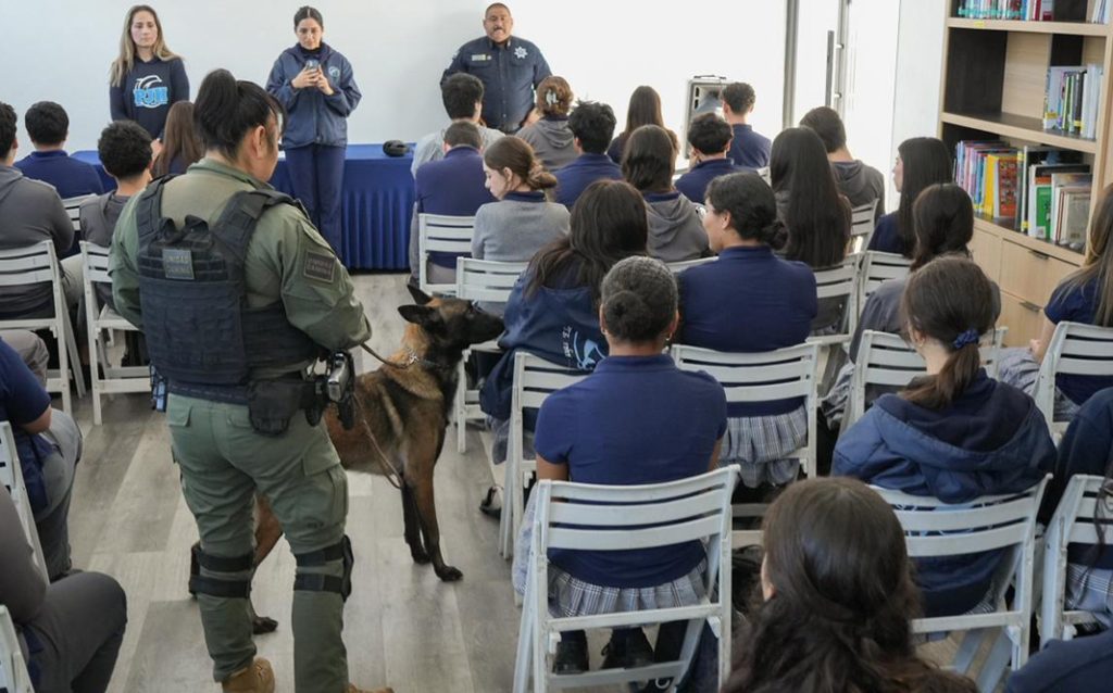 TIJUANA.- Con el firme compromiso de fortalecer las acciones preventivas focalizadas en el sector estudiantil, la Secretaría de Seguridad y Protección Ciudadana Municipal (SSPCM), a través de la Dirección de Prevención del Delito y en coordinación con la Unidad de Operaciones Caninas K9, llevó a cabo el programa ‘Revisión de Pertenencias’ en el colegio Playas Jr. High & High School.