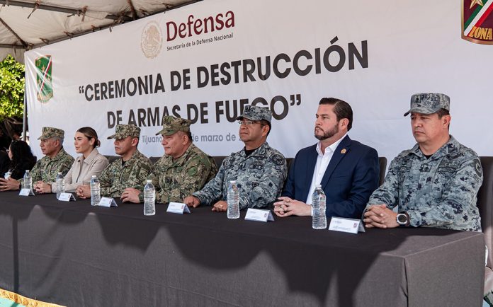 TIJUANA.- El presidente municipal, Ismael Burgueño Ruiz, asistió este martes a la ceremonia de destrucción de armas de fuego, encabezada por la gobernadora del estado, Marina del Pilar Avila Olmeda, y llevada a cabo en las instalaciones del Cuartel General de la Segunda Zona Militar, ubicado en la colonia Morelos.
