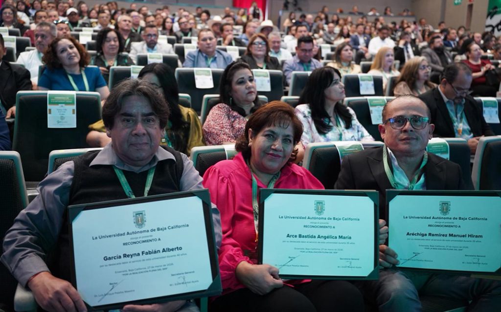 ENSENADA.- En reconocimiento a su dedicación y permanencia, así como a su papel fundamental en el funcionamiento y fortalecimiento del quehacer universitario, la Universidad Autónoma de Baja California (UABC) llevó a cabo la Ceremonia de Reconocimiento a la Antigüedad Laboral del Personal Administrativo y de Servicios 2026, en la que se distinguió a 151 trabajadoras y trabajadores por cumplir 20, 25, 30, 35 y 40 años de servicio, destacando su contribución sostenida al desarrollo institucional.