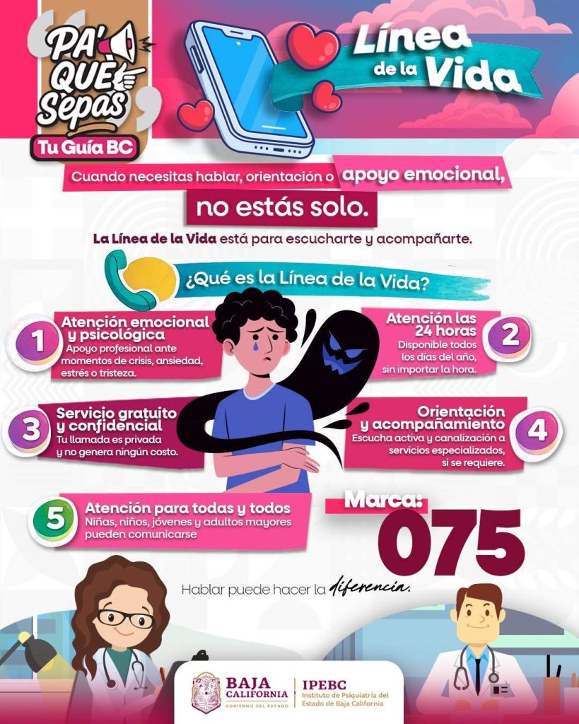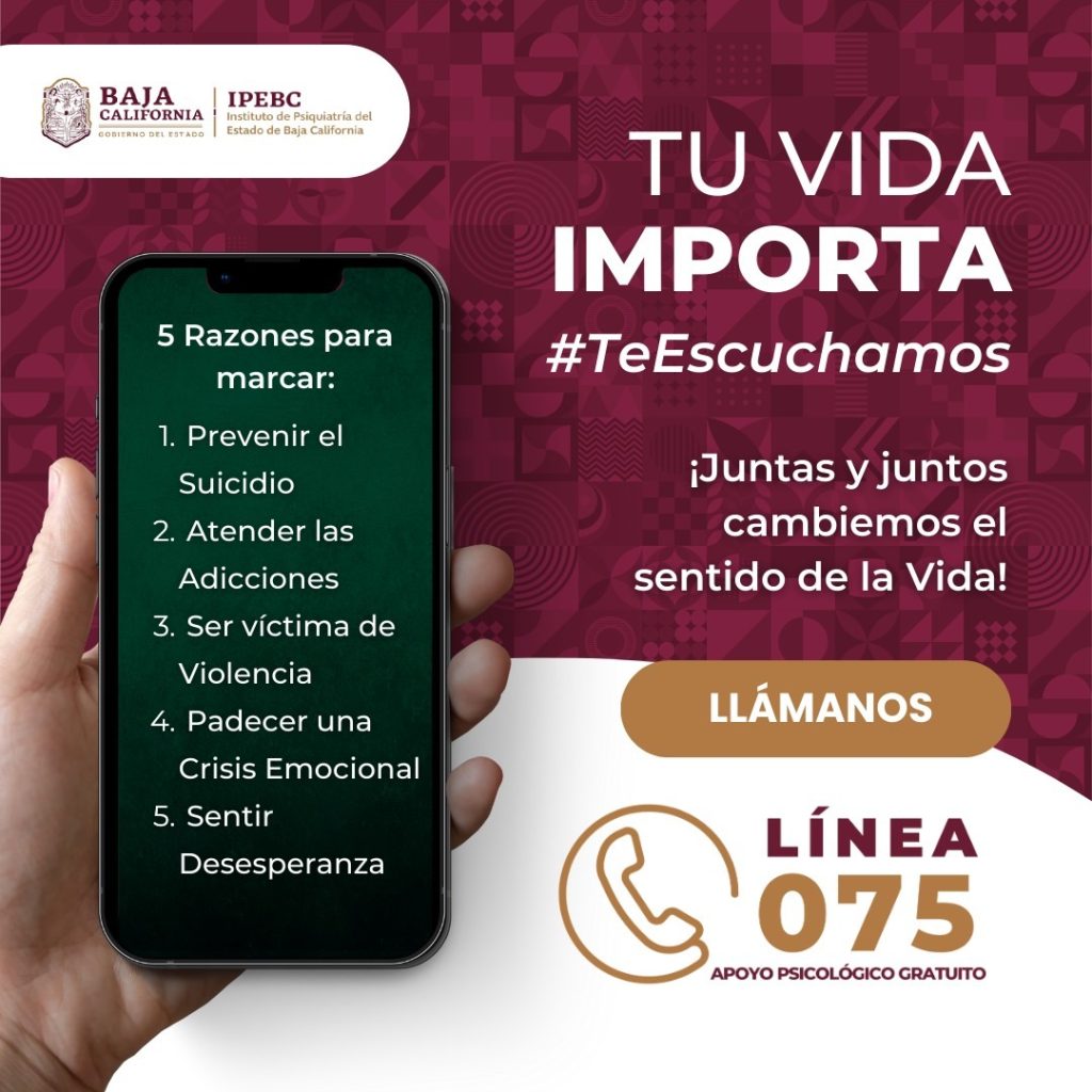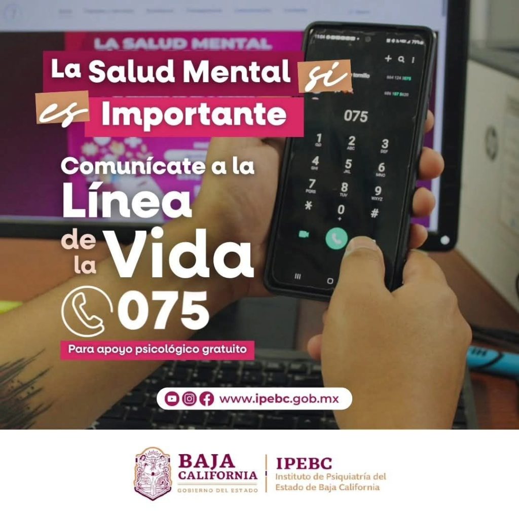 MEXICALI.- Como parte de las acciones para fortalecer la atención en salud mental, el Instituto de Psiquiatría del Estado de Baja California (IPEBC) pone a disposición de la población la Línea 075, un servicio gratuito y confidencial que brinda orientación y apoyo psicológico inmediato las 24 horas del día.