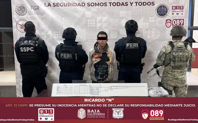 TECATE.- Un hombre que circulaba en motocicleta y portaba un fusil abastecido fue detenido por agentes de la Secretaría de Seguridad Ciudadana de Baja California (SSCBC), durante un recorrido preventivo en la colonia Nido de las Águilas.